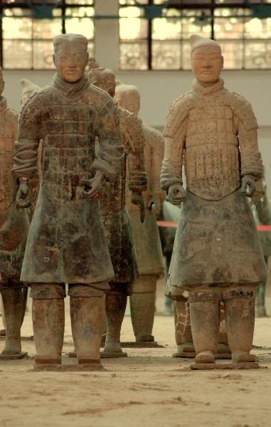 Легенда гласит, что вместе с Шихуанди должны были быть заживо погребены его 4000 воинов для охраны покоя правителя, но такое действо могло повлечь за собой массовое недовольство народа, и император отошел от этой идеи. Живим воинам пришли на замену их глиняные копии, число которых было увеличено вдвое.