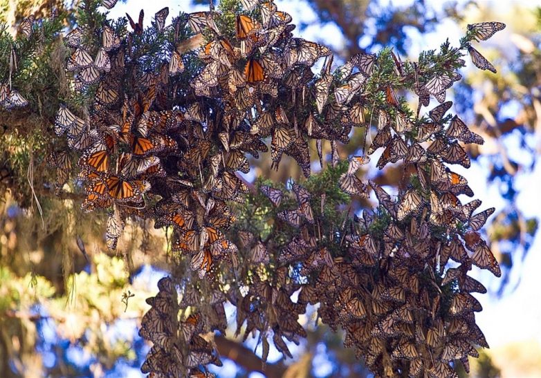 Покрывая тысячи километров, плотные стаи бабочек оживленно перемещаются из Канады в сторону юга США.