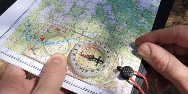 При прокладке маршрута по карте или поиска объектов на ней, когда вы находитесь, например, в лесу, нужно её сориентировать. Или, другими словами, сопоставить север по компасу с севером на карте, который, как вы помните из уроков географии, всегда сверху.