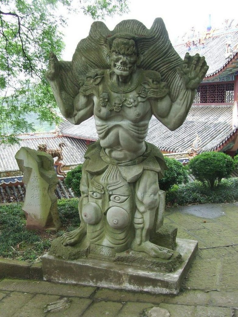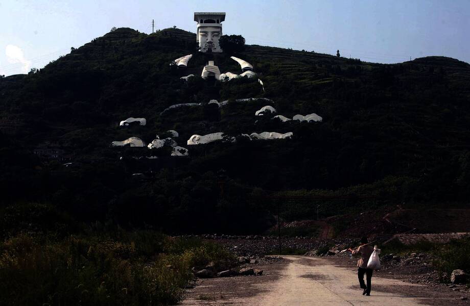 В 170 км от Чунцина, в скале, которая возвышается над рекой Янцзы, вырезана огромная скульптура. Это изваяние давно стало символом города Фэнду, который когда-то находился у подножия горы. Когда в 1990-х годах была запущена ГЭС «Три ущелья», город затопили, а жителей переселили выше. Но комплекс храмов на скалах не ушел под воду, и в последние годы он стал привлекать туристов.