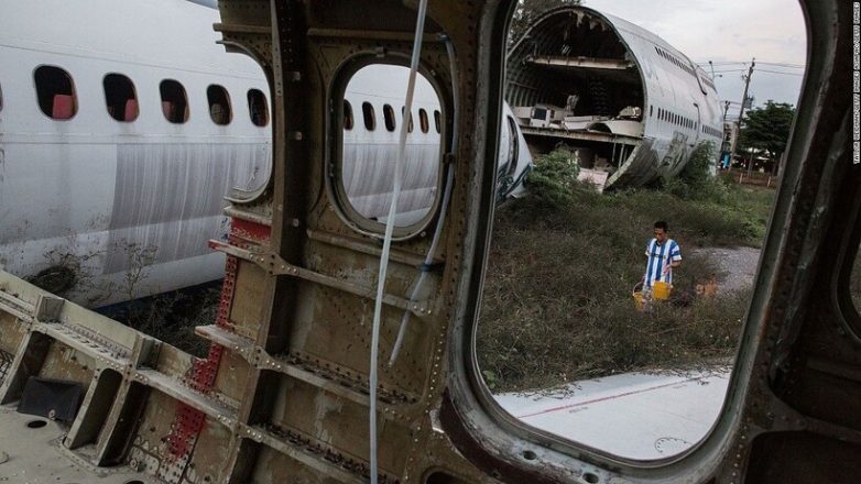 К востоку от Бангкока есть одно уникальное место: здесь оставили «умирать» старые самолеты. Самолетов здесь несколько, и повсюду разбросаны останки лайнеров, среди которых есть и Boeing 747. Это авиационное кладбище облюбовало несколько бедных семей, превратив их в дом.