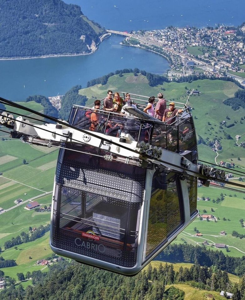 1. Канатная дорога в Швейцарии с креслами на крыше