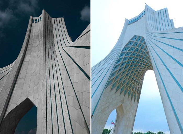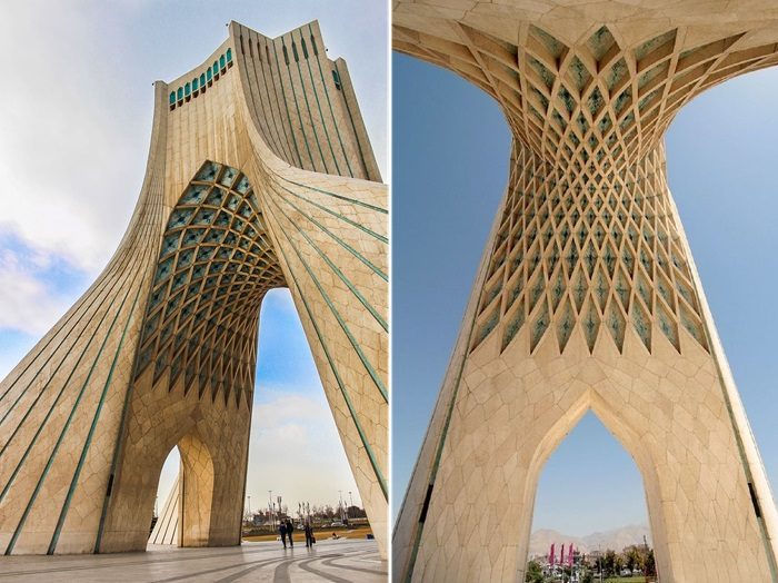 Узнаваемый архитектурный символ древней страны неразрывно связан с ее историей, традициями, культурой и достижениями. Длинные линии, протянувшиеся от подножия башни до вершины, которые сразу же бросаются в глаза прохожим, не просто эффектная деталь. Как казалось, они были вдохновлены ахеменидскими проектами древнеперсидского города Персеполь, появившегося на юго-западе в VI—V веках до нашей эры. А вот внутренняя арка, разделившая основание башни, является отсылкой к Так-Касре – доисламской архитектуре Сасанидов в Ктесифоне. Ромбовидные узоры на уходящем вверх стрельчатом арочном своде и внутренней его части полностью отвечают традициям исламской архитектуры.