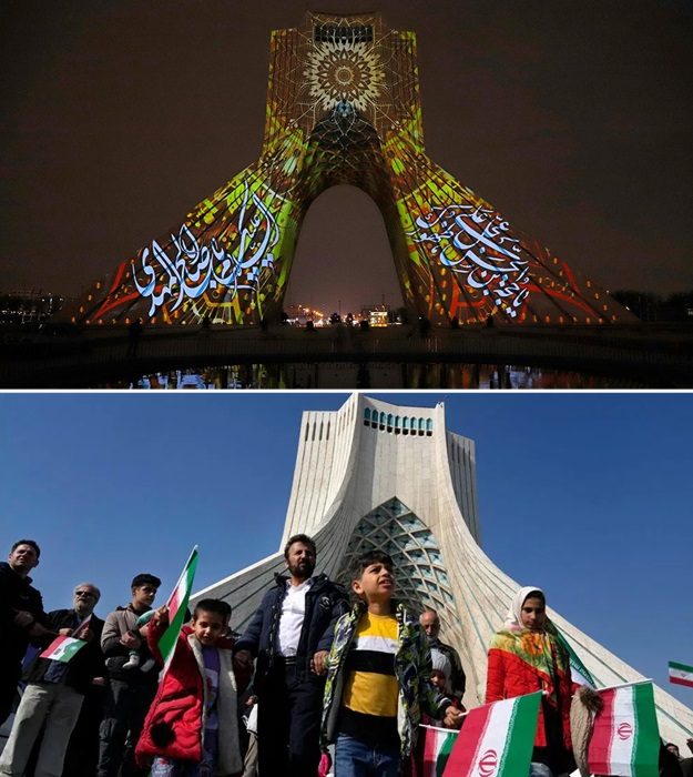 Спустя два года, в октябре 1971 года, на грандиозном мероприятии, на котором присутствовала вся элита страны и почетные гости из многих стран мира (около 3 тыс. человек) была официально открыта 45 метровая Башня Мемориал Шаха (названа в честь Мохаммадреза Пехлеви). Она стала не только памятником символизирующим историческое прошлое и вступление страны в новую эпоху модернизации, но и нулевым километром. Авторы Novate.ru хотели бы напомнить, что именно на этой церемонии шах Пехлеви представил копию Цилиндра Кира Великого, основавшего в 550 году до нашей эры могущественную империю Ахеменидов. Клинопись на глиняном цилиндре иранцами всегда позиционировалась как первая в истории декларация прав человека.