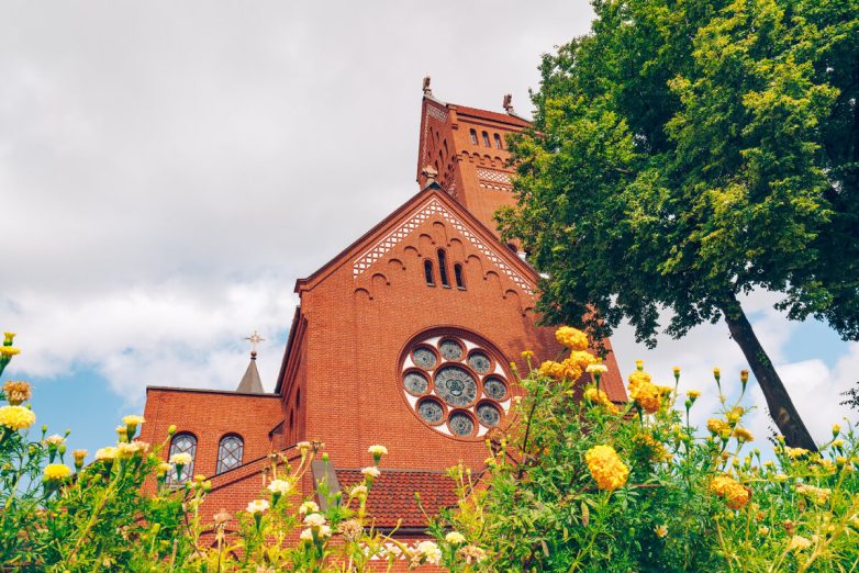 Или просто Красный костёл. Это наиболее известный католический храм, который стал ярким символом города. Посмотреть его можно только снаружи — сейчас он закрыт на реконструкцию.