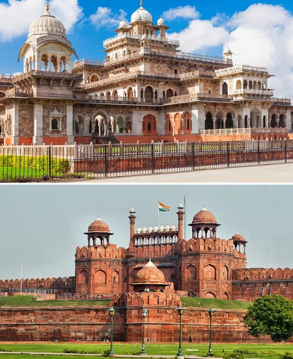 Учитывая, что Джайпур изначально задумывался как столица, неудивительно, что в исторической его части сохранилось множество уникальных архитектурных творений, завораживающих уникальной красотой. Каждый из аутентичных шедевров соответствует определенной эпохе и инновационным внедрениям, которые впервые были опробованы в этом прекрасном городе талантливыми архитекторами, инженерами и строителями. Структура зданий, декоративные элементы и даже самая маленькая деталь любого из них хранит интересную историю, связанную как со становлением столицы, так и с самими строениями.• «Дворец Ветров»