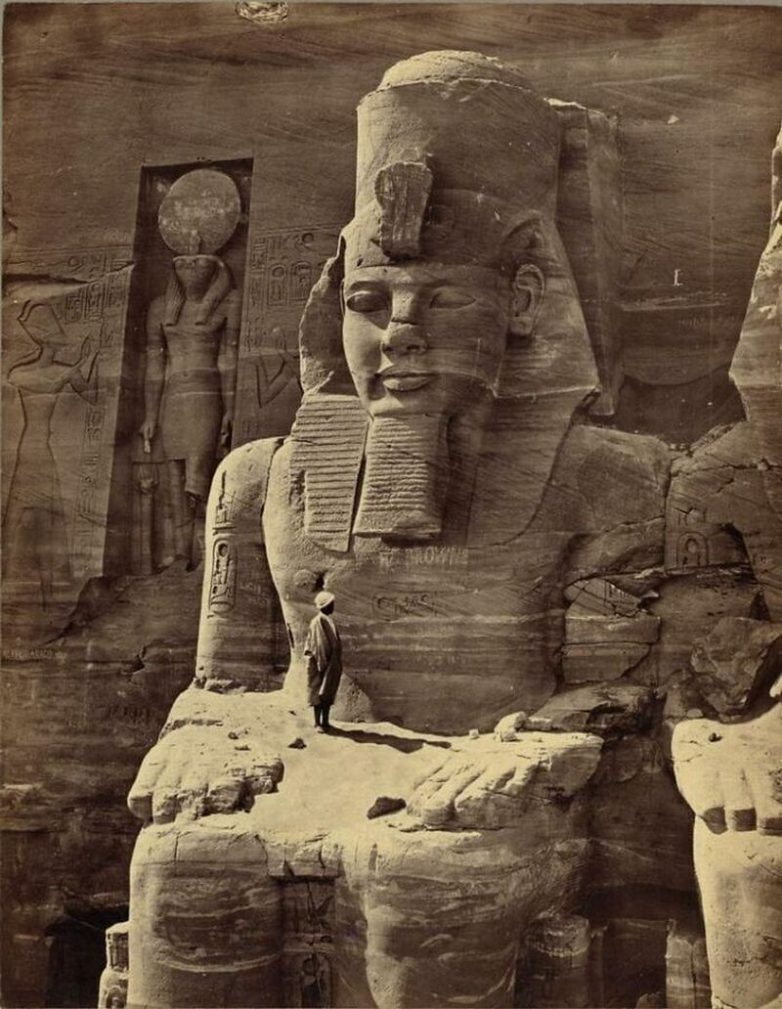 Мужчина стоит на коленях у статуи Рамзеса, 1856
