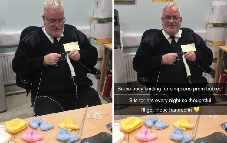 «Сегодня я узнала, что ночной охранник на моей работе вяжет носочки и варежки для недоношенных детей из Королевской больницы Эдинбурга. Он также отправляет их по всему миру. МОЕ СЕРДЦЕ »