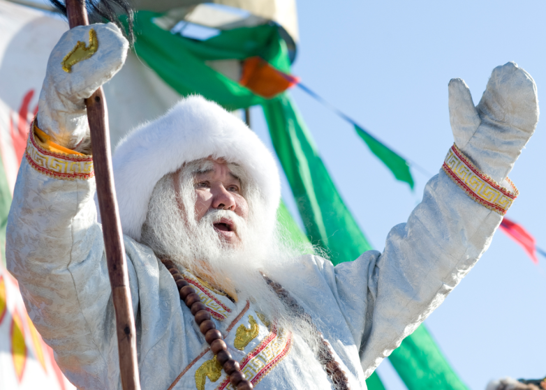 Бурятский Дед Мороз — белый старец Сагаан Убген. Издавна его почитали как бога плодородия, счастья и благополучия. По возрасту он прилично старше главного волшебника страны из Великого Устюга (примерно на 800 лет). Традиционный наряд Сагаан Убген — шуба и шапка с богатой меховой отделкой, которые украшены национальным орнаментом. А отличительные атрибуты: чётки и посох с головой дракона.