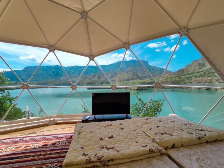 После таких активностей гости отдыхают в прозрачных купольных глэмпингах, встречая закаты и рассветы и попивая ароматный чай с горными травами.