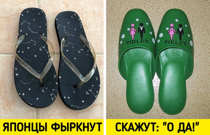 Во многих азиатских странах дома ходят в тапочках. А в Японии в ванную комнату ставят еще одну пару, чаще всего яркого цвета. После использования их нужно обязательно оставить на прежнем месте. Cчитается большой бестактностью и даже оскорблением, если гость пройдет в них в другие комнаты.