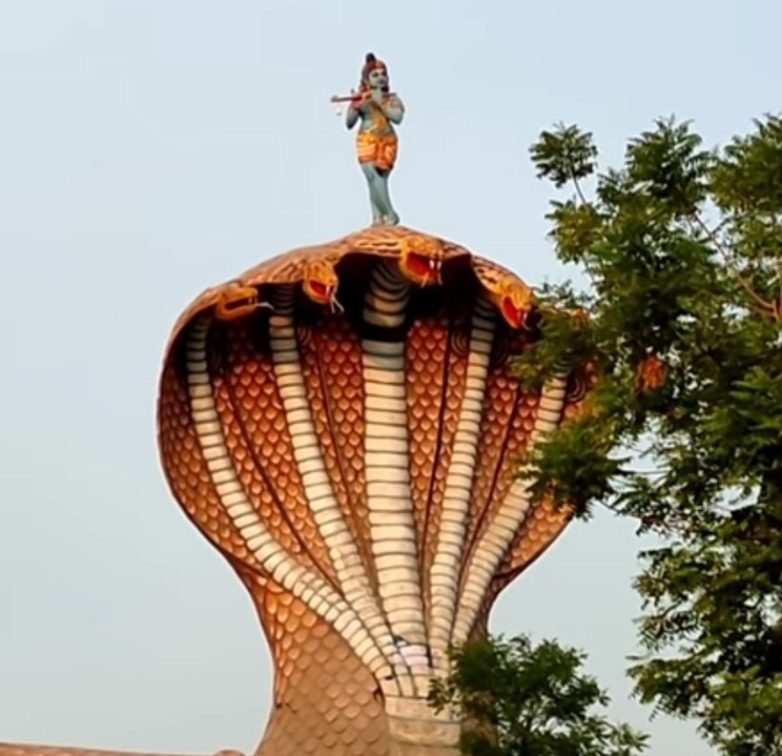 Именно эта легенда и отразилась в храме Нага Девата: гигантская кобра словно приготовилась к укусу, а на одной из ее голов стоит с флейтой Кришна.