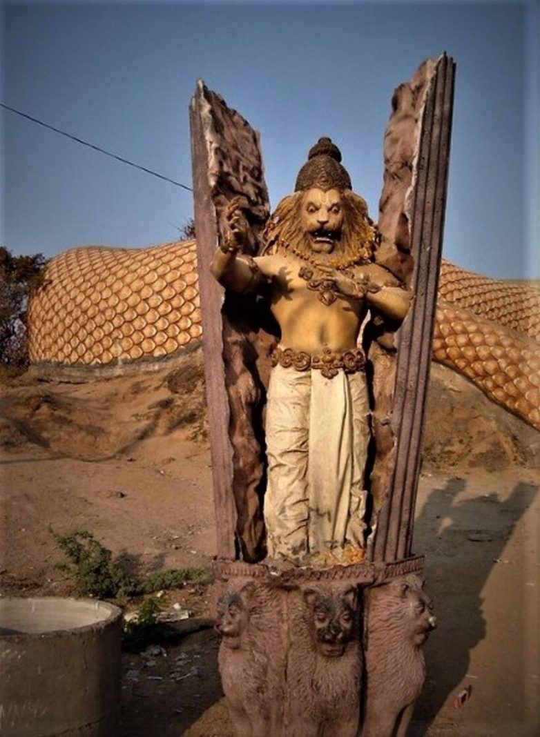 После прогулки по телу кобры, посетители храма приходят к скульптуре Нарасимха, который убивает очередного демона, покушающегося на мир. Так что храм посещают люди с разными целями: кто-то поклоняется Вишну и его аватару Нарасимхе, кто-то ― Кришну, другие отдают почести змеям, которых в этом регионе почитали веками.