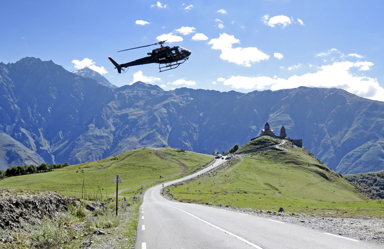 Подцепив какой-то груз, вертолёт полетел в сторону Казбека — не иначе там строят новый отель или тропу к вечным льдам, доступную хоть в инвалидной коляске: