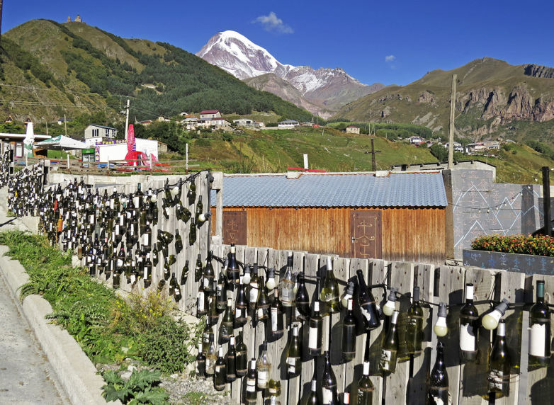 Казбек — вот он, нависает над первым от российской границы грузинским городком Степанцминда во все свои 5033 метра. Вернее, так-то он издавна был Мкинварцвери («гора с ледяной вершиной»), в крайнем случае Урсхох («Белая гора» у осетин) и Бешлоамкоарта («Тающая вершина» у ингушей), но мнения горцев русские офицеры не спрашивали, а грузинское название произносить — быстро вывихнули себе языки, так что даже «Никак нет!» и «Так точно!» стало не вымолвить. Поэтому в обиходе Мкинварцвери стал «горой Кази-бека» по местному князю Казибеку Чопикашвили (чьи потомки стали родом Казбеги), что с годами и превратилось в официальное название Казбек.