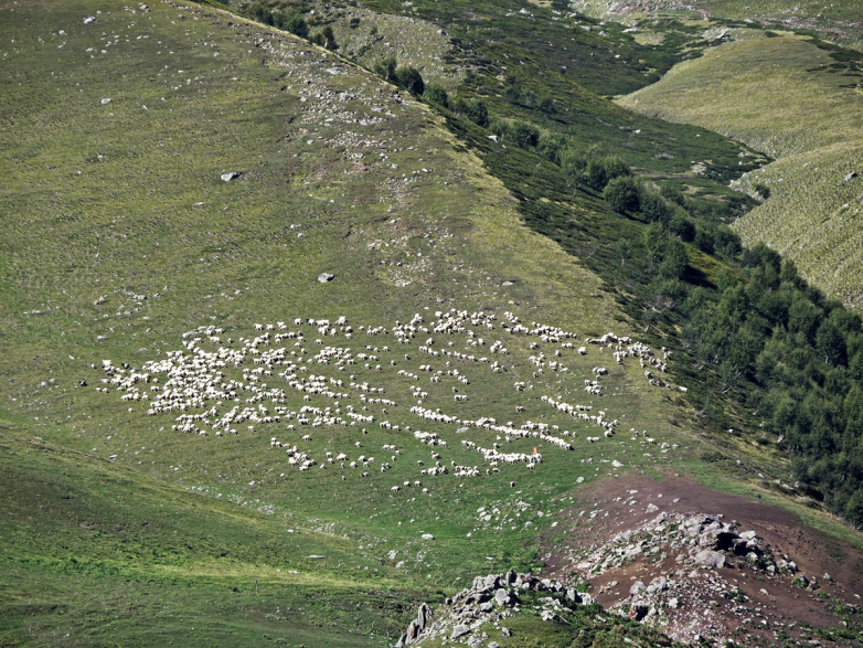 Ещё немного — и обогнув гору Самеба по каньончику речки Баши, тропа выводит на простор альпийских лугов. Над которыми попробуйте найти Казбек — на самом деле хорошо виден он бывает не чаще Эльбруса и уж точно реже, чем Арарат, а оба наших ясных утра в Степанцминде кутался в тучи примерно к 10 часам.