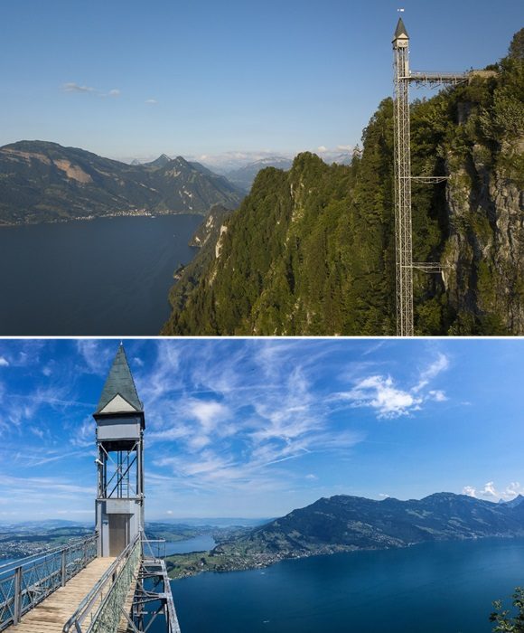6. Открытый подъемник Hammetschwand-Lift на берегу озера Люцерн (Швейцария)