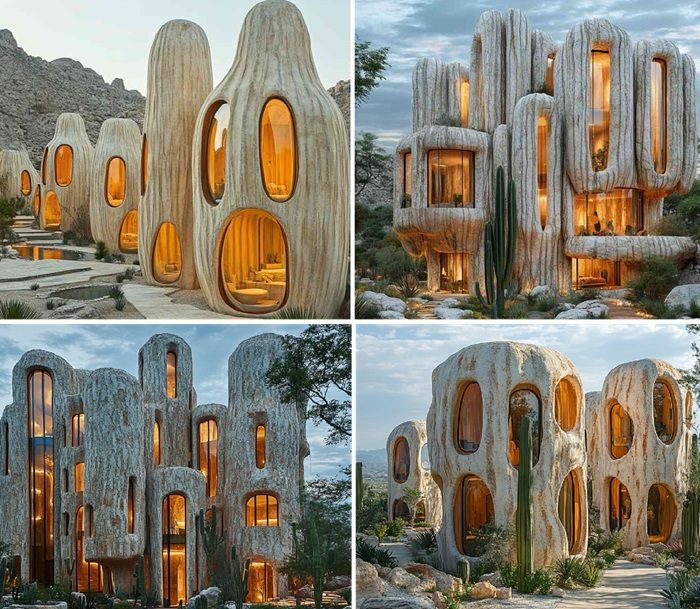 Проект, предусматривающий строительство нескольких кластеров, состоящих из цилиндрических каменных башен разной высоты и диаметра, рассчитан на максимальное единение человека и природы. Камни, используемые для возведения оригинальных убежищ, имеют естественные оттенки, при этом вертикальные канавки, вырезанные на их поверхности, имитируют фактуру кожицы кактуса. Да и сами внутренние пространства могут похвастаться органическими формами и «пещерными» элементами.