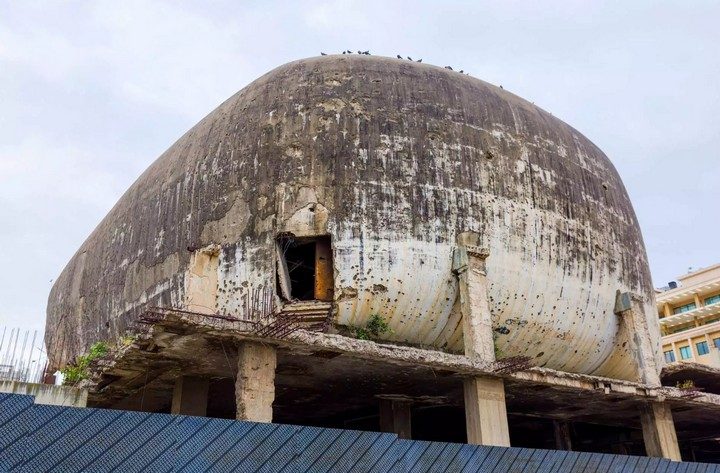 В 1965 году архитектор Жозеф Филипп Карам спроектировал «Яйцо» в период строительного золотого века Ливана. Это было время, когда модернистские архитекторы активно экспериментировали с новыми идеями и материалами. Проект включал две большие башни, однако была построена только одна, которая не пережила войну. Но овальная оболочка кинотеатра, несмотря на годы боев, сохранилась, оставив на себе шрамы тех времен.