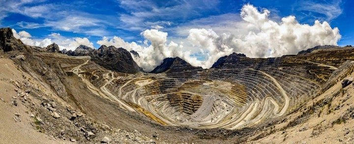 Карьер расположен в месте столкновения двух тектонических плит, где миллионы лет назад горячая магма проникала в осадочные породы, создавая богатые месторождения золота и меди. Интенсивная добыча началась в 1990-х годах, а объемы добычи впечатляют. В 2016 году из шахты было извлечено более 500 000 тонн меди и 28 000 килограммов золота.