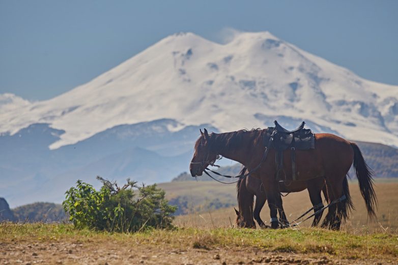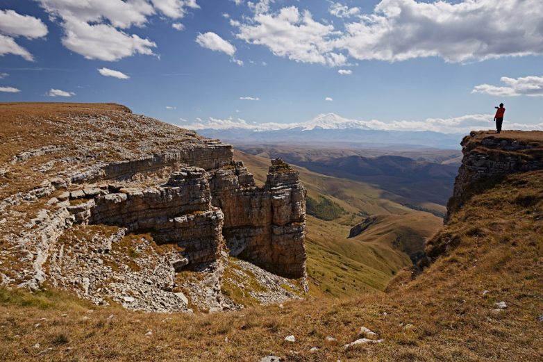 Отвесные обрывы высотой 300 метров, за ними холмистые горные луга, по которым гуляют лошади и стада овец. Величественный Эльбрус возвышается среди этой красоты. Так выглядит плато Канжол на высоте 2850–2950 метров, в 35 километрах от Эльбруса.