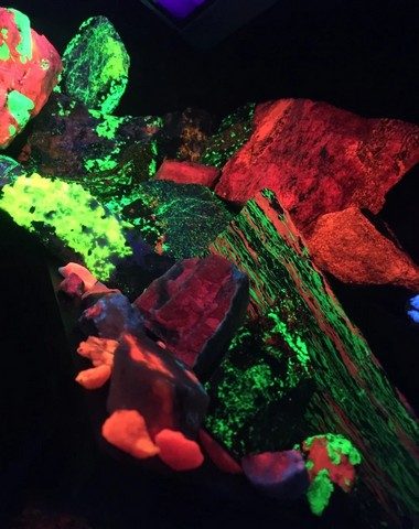 Коллекция музея включает не только природные минералы, но и различные винтажные предметы, связанные с флуоресценцией, такие как старинные ультрафиолетовые игровые наборы и информационные стенды. Каждый экспонат раскрывает научные и художественные аспекты флуоресценции.