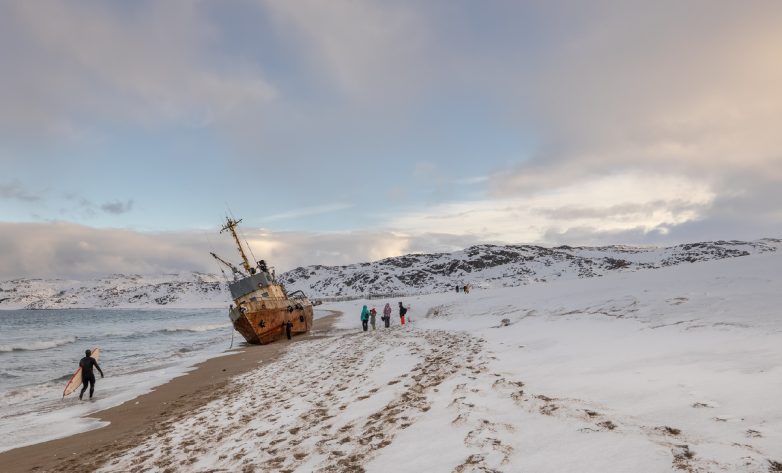 В 130 км от Мурманска расположен небольшой посёлок Териберка, получивший популярность после выхода фильма Андрея Звягинцева «Левиафан». Раньше здесь процветал рыбный промысел — местные жители на небольших траулерах ходили в море. Но со временем рыболовство пришло в упадок. Невостребованные суда никто не вывозил. Свой последний приют они нашли в устье реки Териберка, на берегу вдоль дороги в посёлок Лодейное. Сегодня это популярное среди туристов место, где можно сделать атмосферные и эффектные фотографии.