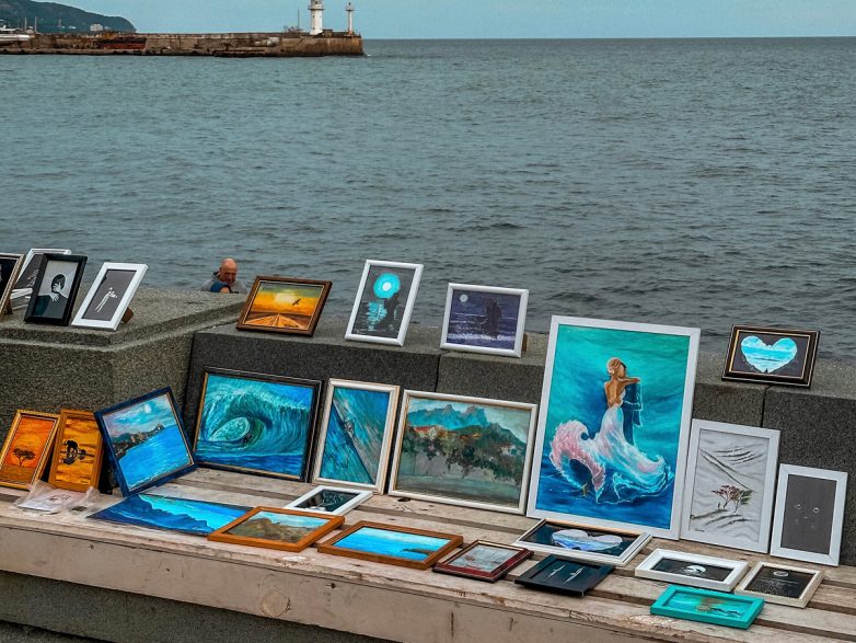 Даже зимой местные художники выставляют свои работы на набережной. При желании вы можете приобрести картину с крымским пейзажем.