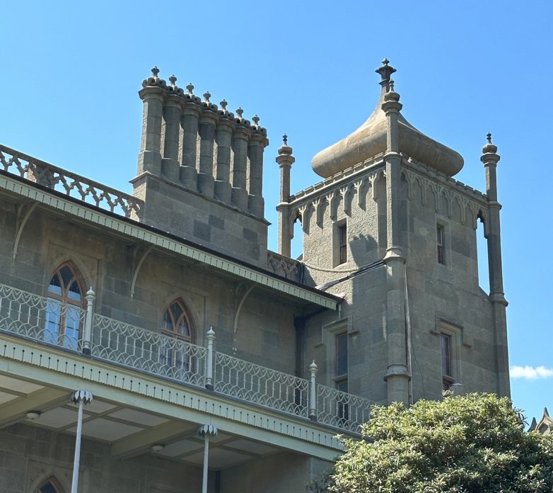 Ливадийский дворец украшают коллонады, открытые галереи, балконы и резной декор.