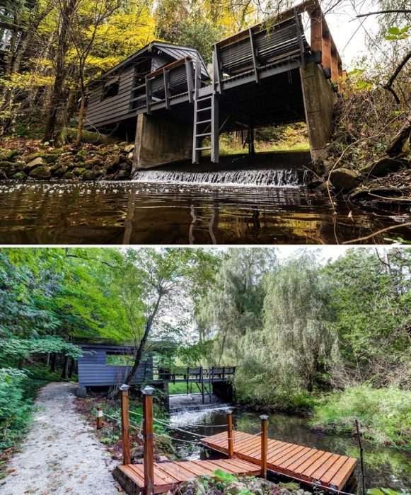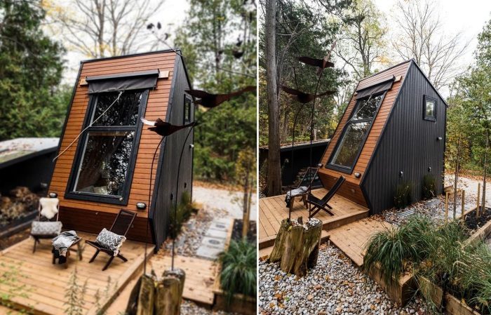 Очаровательный крошечный дом в лесах Актона, что в 45 минутах езды от Торонто, является тем местом, где уставшие от суеты и постоянного шума горожане могут расслабиться и перевести дух. Восхитительное во всех отношениях лесное убежище, предлагающее безмятежный отдых в окружении высоченных деревьев и умиротворяющей водной глади реки, обеспечивает уют и вполне современный комфорт несмотря на более чем скромные размеры.