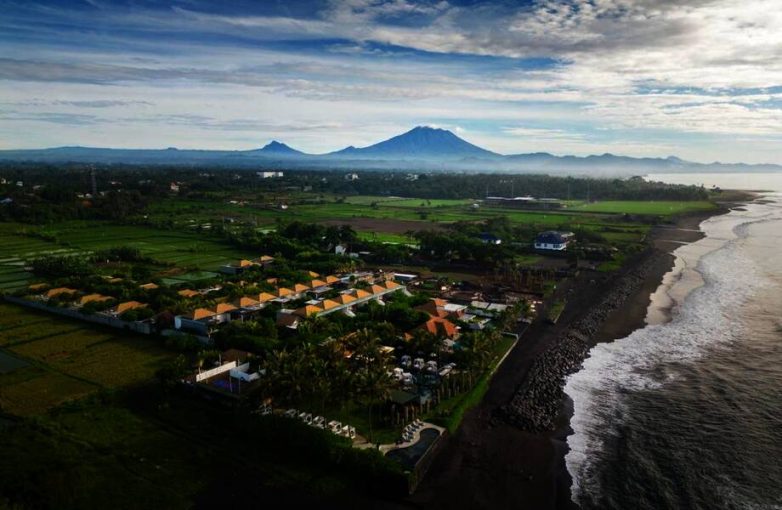 Элегантный бутик-отель находится прямо на пляже с черным песком. Гостям предлагают жить в виллах с личными бассейнами, утопающими в тропических садах. Также на территории имеется ресторан с видом на океан и спа-салон.