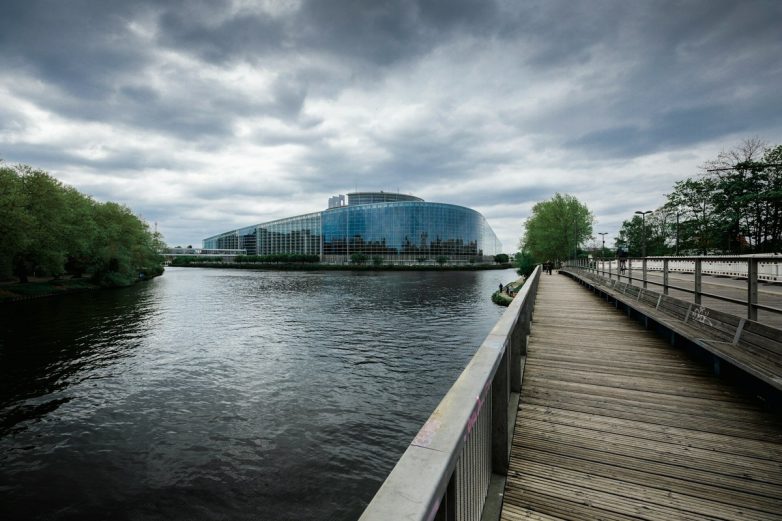 Здание Европарламента напоминает спину огромного кита, примостившегося у реки.