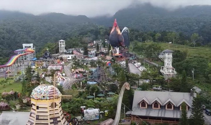 Отель Rooster Hotel на территории курорта возвышается на 35 метров и представляет собой впечатляющее зрелище. Он не только выполнен в форме домашней птицы, но и выглядит как гигантский реалистичный петух, доминирующий над окружающей территорией. Директор курорта Рикардо Кано Гвапо Тан рассказал журналистам, что хотел создать нечто уникальное, привлекающее внимание, и одновременно отдать дань уважения местной культуре, в которой петушиные бои играют значительную роль.