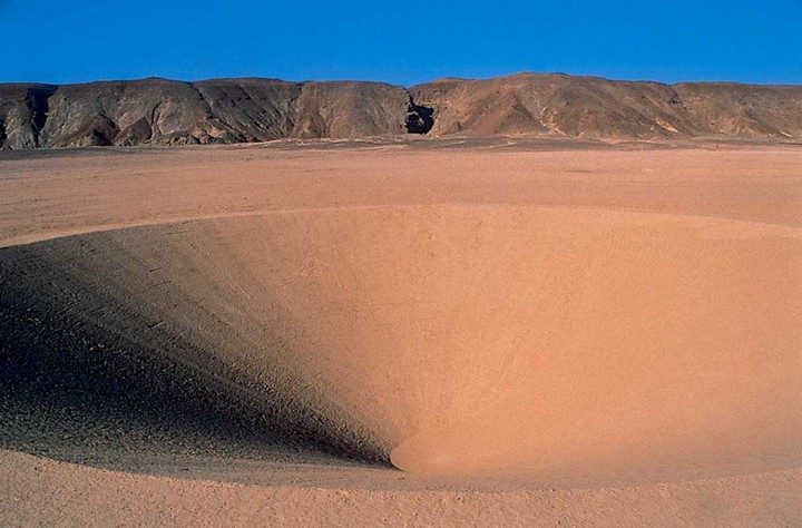 Инсталляция, завершенная в 1997 году после нескольких лет строительства, состоит из фрактальной спирали конусообразных выступов и чередующихся конусообразных впадин. С земли трудно увидеть весь масштаб проекта, так как это место выглядит как цепочка все увеличивающихся куч песка, рядом с которыми находятся соответствующие ямы, из которых они были выкопаны.