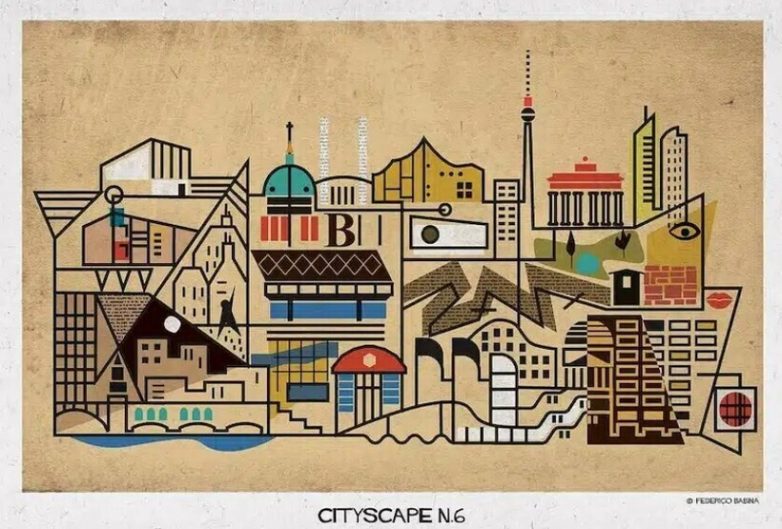 Есть особая привлекательность в художниках-путешественниках, которые делают зарисовки своих поездок. У некоторых это чудесные акварельные рисунки, у других ― нарисованные достопримечательности-открытки. Федерико Бабина, итальянский архитектор и графический дизайнер, нашел свой стиль, и создает уникальные сувениры: города в виде лабиринтообразных композиций, полных жизни и динамики.