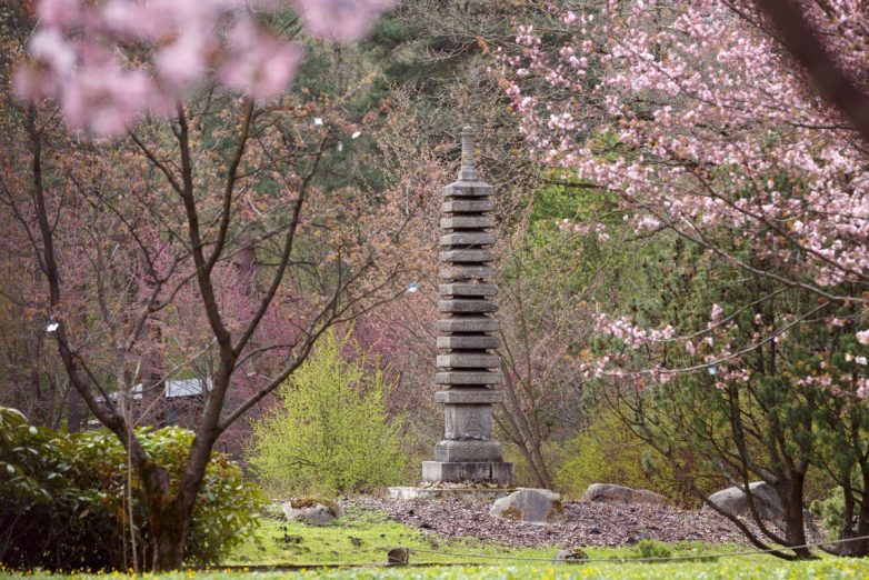 Из-за более холодного климата цветы появляются позже, чем в Москве или Санкт-Петербурге, — ближе ко второй половине мая. Помимо сакуры в саду растут красивые кедры и серебристые ели. На прогулку возьмите немного орехов — тут водятся белки, которые охотно идут на контакт с людьми.