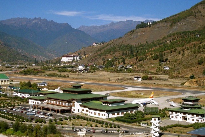 Аэропорт Паро расположен на высоте около 2 200 метров над уровнем моря. Единственная взлётно-посадочная полоса имеет длину менее 2 000 метров и вырублена прямо в склоне горы. При снижении самолёты проходят среди вершин Гималаев высотой до 5 500 метров, а сильные и нестабильные ветры, гуляющие по долине, значительно усложняют посадку.