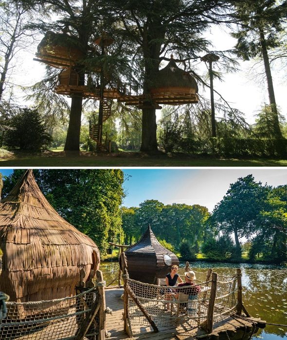 Настоящий семейный курорт, гарантирующий идеальный отдых на любой вкус, находится между Мон-Сен-Мишелем и Сен-Мало и занимает он территорию бывшего епископского поместья с самым настоящим замком XVI века. Здесь каждый найдет себе и уникальное убежище, и занятие по душе. Обширное поместье площадью более 80 га предлагает как фантастическую развлекательную зону, так и множество вариантов размещения, начиная с плавучих хижин, расположенных на сверкающих прудах, домов на деревьях в живописных лесах и заканчивая номерами-пузырями, имитирующими жизнь на Марсе, Юпитере или Венере. Единственное, к чему нужно быть готовым, так это к полному отсутствию электричества и Wi-Fi, зато активных развлечений, отдыха у бассейнов (включая крытый с тропическим раем), прогулок по поместью и других мероприятий будет предостаточно, как и запас свечей.