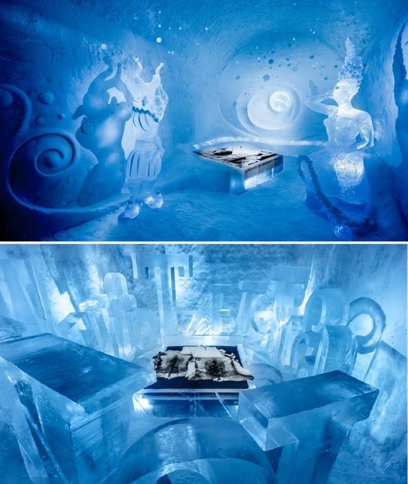 Несмотря на название и популярность именно как ледяного отеля Icehotel в шведской Лапландии, он круглый год принимает гостей, но зимой он особенно крут и привлекателен. Эксклюзивные номера, возводимые только зимой с использованием глыб льда из реки Турне разными художниками каждый год, предлагают потрясающие интерьеры и захватывающие дух сюжеты даже для тех, кто готов провести ночь при минусовой температуре. А все потому, что что для посетителей готовят целые комплексы и уличные композиции из снега и льда, которые оставят неизгладимые впечатления у всех без исключения гостей.