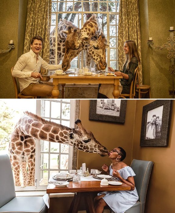 Конечно же, в путешествиях часто можно встретить новых друзей, но не каждый день получится за завтраком или ужином «пообщаться» с самыми настоящими жирафами. И только лишь посетителям бутика-отеля Giraffe Manor в Найроби такое соседство не покажется фантастическим, ведь главной фишкой одного из самых эксклюзивных мест гостеприимства пригорода столицы Кении, является целое стадо диких жирафов, которое запросто может в течение дня, чтобы выпросить вкусности у постояльцев, не стесняясь при этом просовывать головы в открытые окна (благо шеи длинные).