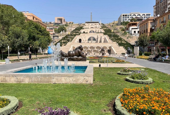 У подножия Каскада расположен уютный сквер, в котором установлены работы известных современных скульпторов, в том числе Фернандо Ботеро. Вокруг — множество кафе, где можно насладиться кофе и прекрасными видами на Ереван и гору Арарат.Интересные факты