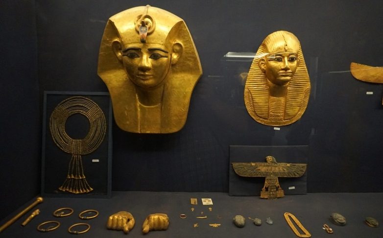 Здесь можно увидеть точную копию золотой маски и саркофагов. Все таблички дублируются на русском языке.