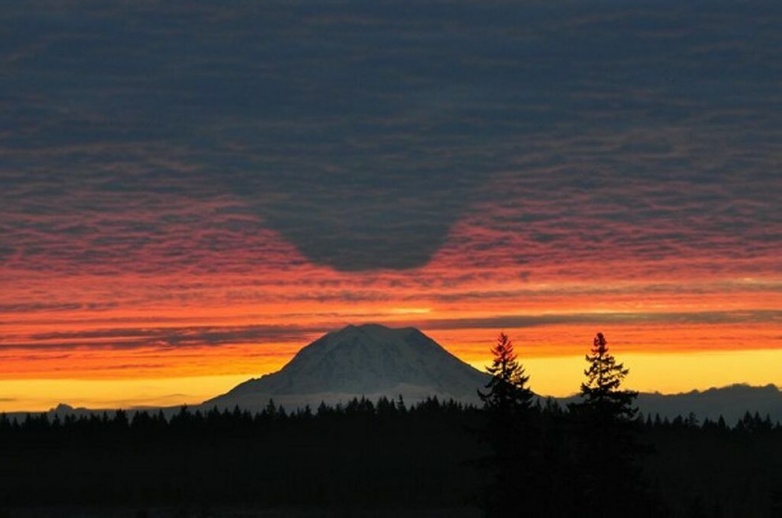 И если вы относитесь к последним, т.е. к тем, кому посчастливилось видеть величественные горы каждый день из окна своего дома, пользуйтесь моментом. Особенно, на закате или рассвете, когда горы могут создавать поразительный феномен: они отбрасывают огромную тень на облака, создавая удивительное зрелище. А если вы никогда не видели гор в непосредственной близости в эти волшебные “золотые” часы, то для вас – эта прекрасная фотоподборка.