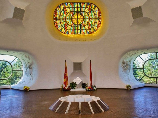 Македониум был открыт в 1974 году по проекту архитекторов Исамара Хаджиомеровича и Йордана Грабуловского. Памятник сочетает модернистскую эстетику и глубокую символику: его сферическая форма символизирует вечность и единство, а многочисленные проемы и витражи представляют надежду и просветление.Внутри сооружения находится мавзолей с останками революционера Николы Карева — одного из лидеров восстания, а также музей с экспонатами, связанными с национально-освободительным движением.