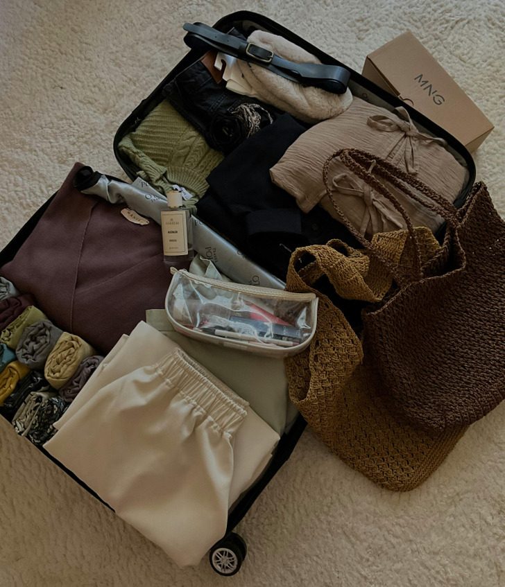 Как правило, самые тяжелые и объемные вещи лучше складывать на дно чемодана. Они будут придавать ему структуру и меньше помнут остальные вещи. Затем можно разместить валики и стопки сложенных вещей, обувь, косметички и другие принадлежности. По краям — распределить ремни, пояса и более мелкие предметы. Шляпы и головные уборы можно проложить теми же валиками из вещей, чтобы они не мялись и сохранили форму.