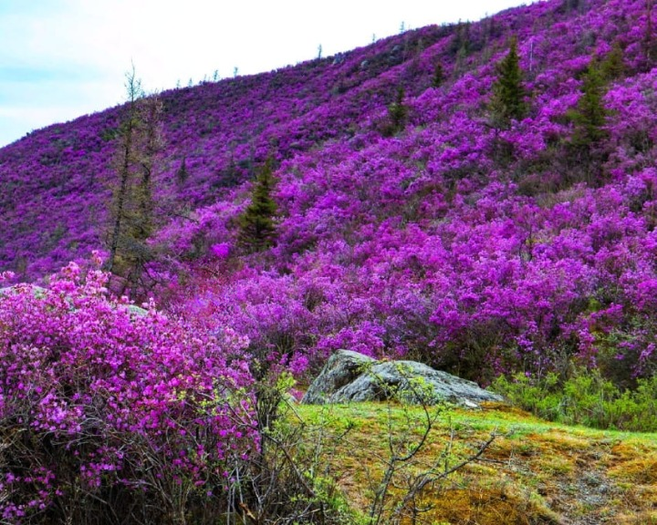 Весной Алтай превращается в фиолетовое царство маральника. Горы, окутанные сиреневой дымкой, будто сошли с полотна импрессиониста. Прогуляйтесь по этим холмам — и вы почувствуете, будто шагнули прямо в сказку.