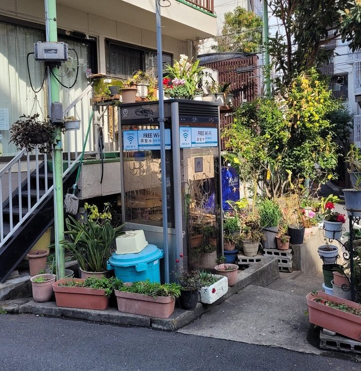 Кто-то использовал старую телефонную будку для обустройства своего сада