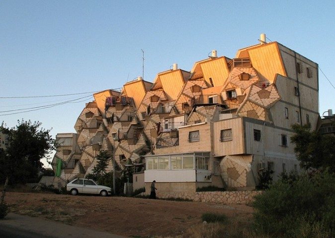 Необычная форма здания создавалась с использованием 720 предварительно изготовленных не прямоугольных элементов. Вдали конструкция напоминает куб или пчелиные соты. После заселения жильцами здание подверглось значительным изменениям. Общая планировка комплекса напоминает ладонь: каждый «палец» состоит из пяти-шести V-образных блоков, соединённых между собой. Такая структура формирует внутренние дворы и пешеходные дорожки. В центральной части находились торговая зона, образовательные учреждения и общественные пространства, а по периметру — три парковки.