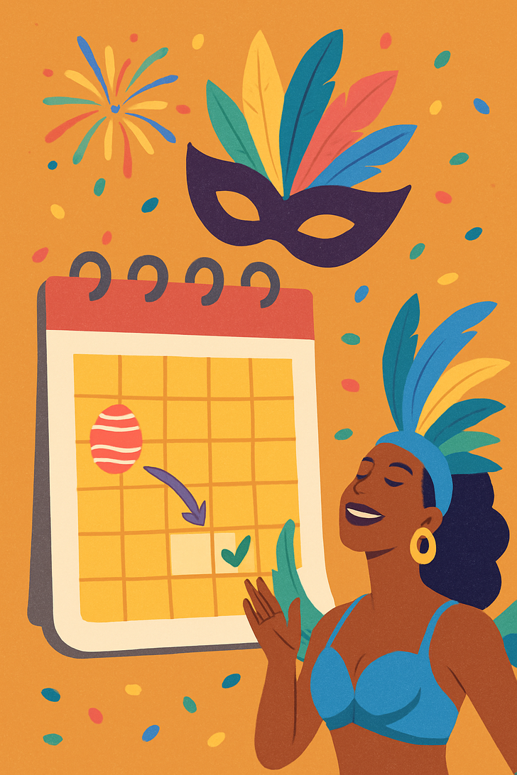 Бразильский карнавал не имеет фиксированной даты. Обычно он проходит между февралем и мартом, в зависимости от того, когда отмечается Пасха. Каждый год заканчивается накануне Пепельной среды, которая открывает Великий пост. Это примерно за 46 дней до Пасхи, поэтому даты карнавала ежегодно меняются.