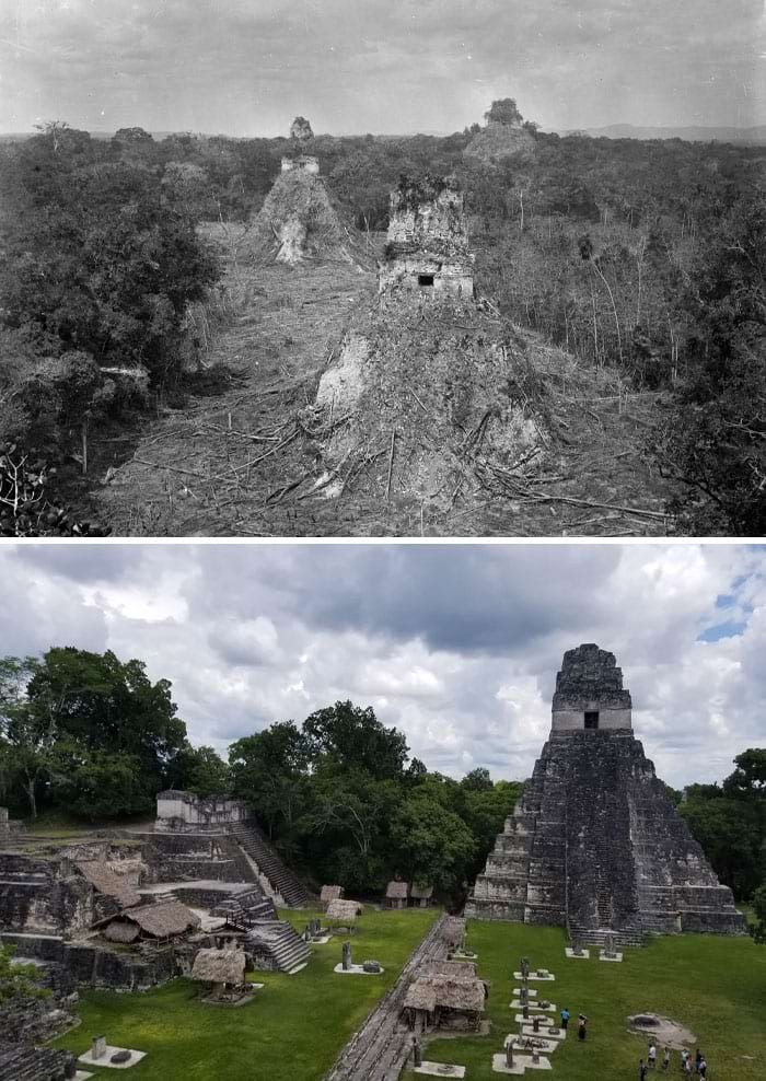 Руины Тикаля, Гватемала. 1890 против 2023